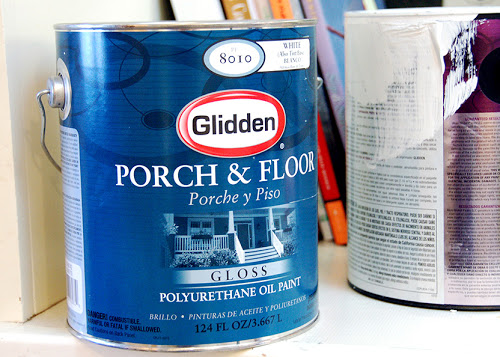 Problem #1: The porch and floor paint dried glossy. Crazy, crazy glossy. I still can't explain how I missed that on the paint can... I think school may be affecting my decision making abilities. Solution? Grab some clear satin spray and tone those babies down...