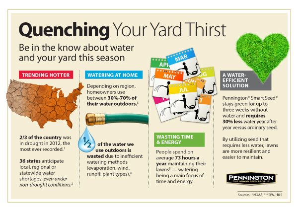 We can't deny that for whatever reasons, we are trending hotter... last year was the hottest year on record and 36 states anticipate continued water shortages. Most of us still want that fabulous looking green lawn, and Pennington Smart Seed's more efficient use of such a precious natural resource as water is worth noting.