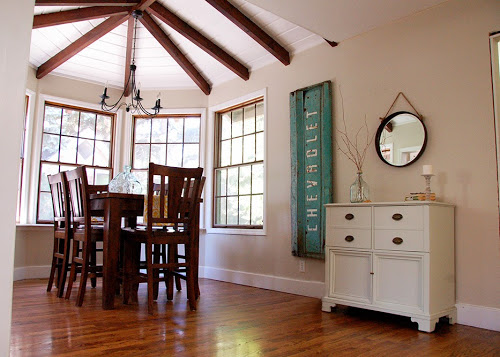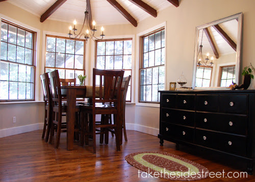 Once the dresser is in the bedroom, there will be a big empty spot in the dining room! So she'll probably relocate some more furniture and go on an impromptu shopping trip for a mirror.