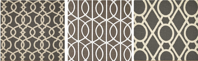 And the next stop, besides replacing all the baseboard and casing that I ripped off this morning, is picking some fabric for some roman shades. I'm thinking something geometric, gray or mushroom maybe? This is what I'm looking at: