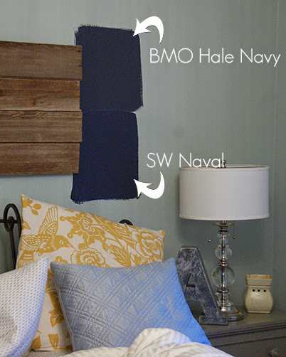 I'll spare you the suspense, because I totally already chose one, since I'm used to not blogging anymore and I'm learning how to be zen in making design decisions alone. I chose Benjamin Moore's Hale Navy for its delightful greyed out, deliciously pensive self. And then I painted the other three walls white.