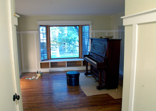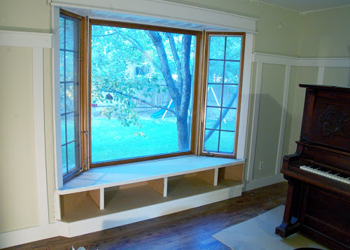 And bonus, he rebuilt the window seat so it's bumped out a little from the wall and has cubbies. I love it!