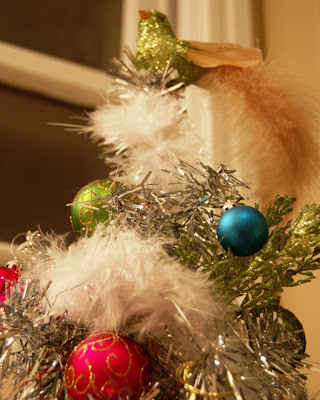 (Full disclosure: I was going to use the maribou to edge a pastel velvet tree skirt, but my sister had the idea of using it as garland -- if I don't give her credit for this she might never speak to me again. Johannah, you're a genius.)