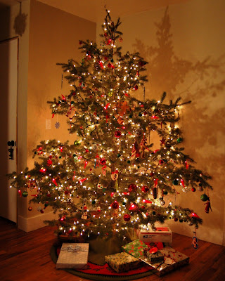 Here's our tree at night looking a little more 'glowy' and beautiful: