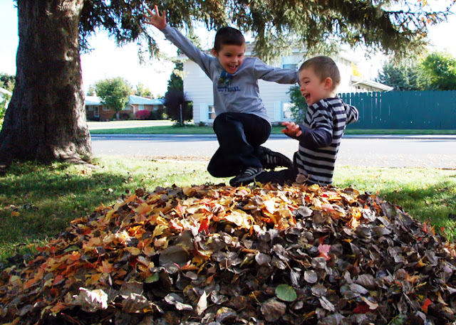 I LOVED doing this as a kid, until my mother told me the piles probably had spiders in them. Shame on her, right?You're kiddos are so cute and they look so happy!