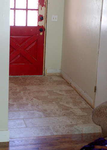 Looks FAB! ....and I love the tile you chose. Its very neutral but warm. Looks great!