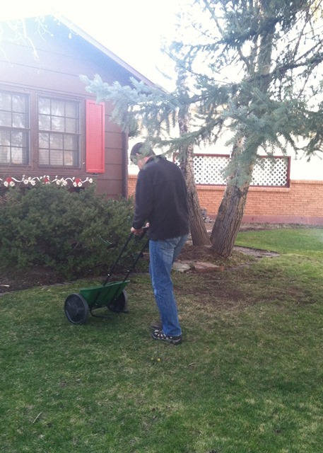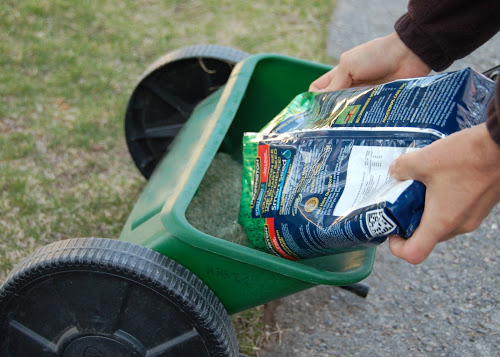 - Sprinkle the seed (we used a spreader we already had) and gently rake to cover it lightly with soil.
