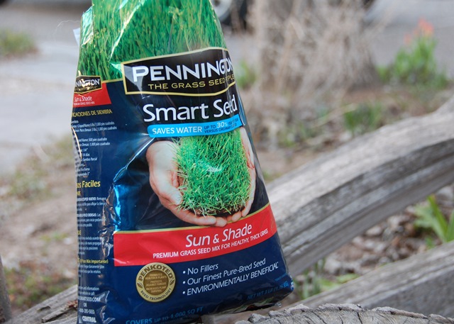 First, choose a great seed. Pennington offers several different varieties and mixes so you can pick the right seed for your lawn; we picked up a mix called "Sun & Shade" for our tree-filled yard. I was also impressed to read how much work has gone into developing Pennington's Smart Seed: there are no fillers, and the seed has been formulated to germinate faster, grow deeper and denser root systems, and use up to 30% less water each year.